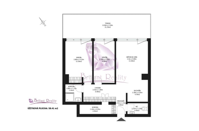 Byt je situovaný v bytovom dome so samostaným vstupom, čo poskytuje maximálne súkromie a komfort bývania. Výmera bytu je 58,41 m2.